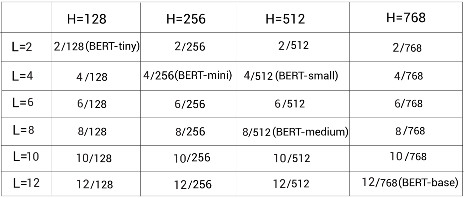 라고 할 때 BERT-base, BERT-large와 같은 표준 구조 외에도 다른 조합으로 BERT를 구축할 수 있다.