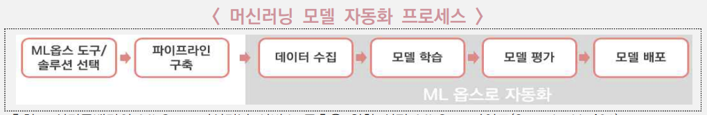 - MS, AWS, 구글 등 글로벌 주요 IT기업들은 복잡한 절차가 필요한 AI·ML 기술개발의 효율성과 생산성을 향상하고자 MLOps 서비스를 개발하여 지원