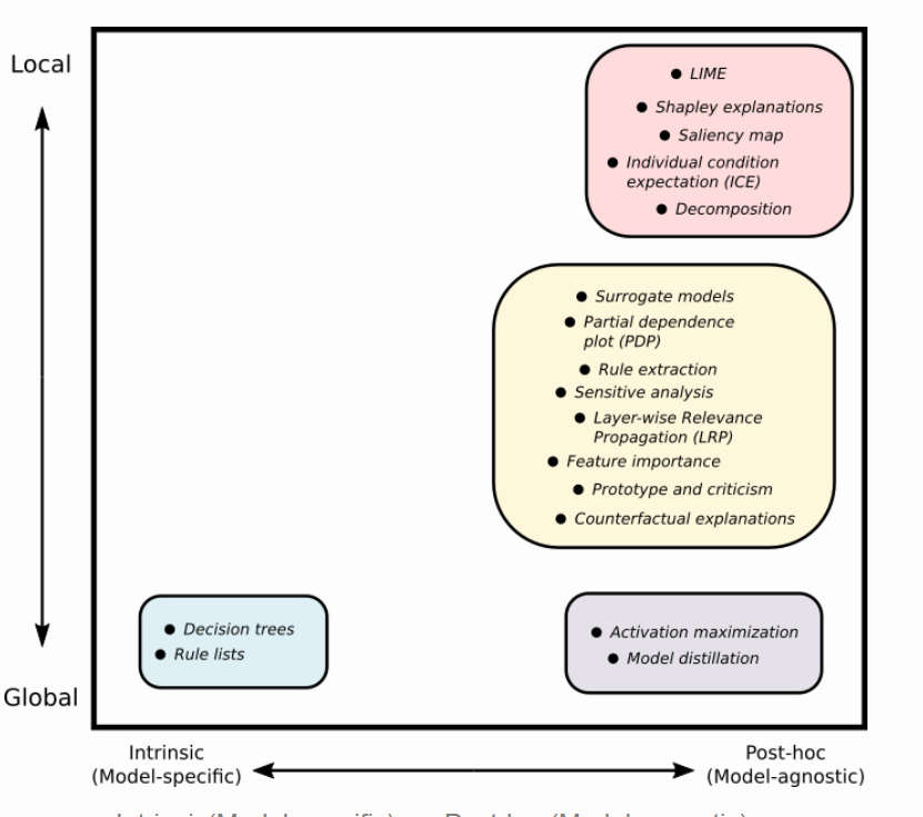 ** intrinsic과 model-specific, post-hoc과 model-agnostic은 서로 간의 관점에 차이가 있을 뿐, 실질적으로는 동시적으로 적용될 수 있는 특성이라고 봐도 크게 무리가 없다고 할 수 있다.