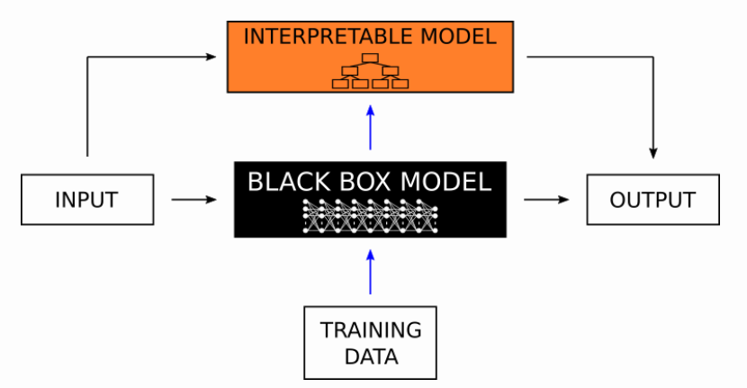 이렇게 복잡성이 높은 머신러닝 모델에 대하여 적용할 수 있는 대안으로, 비교적 간단한 형태를 지니는 별도의 ‘설명용 모델 (interpretable model)’을 셋팅하고(e.g. 의사 결정 나무, 희소 선형 모델, 규칙 리스트 등) 이를 설명 대상이 되는 머신러닝 모델에 갖다 붙여 적용하는 방법을 시도할 수 있다.